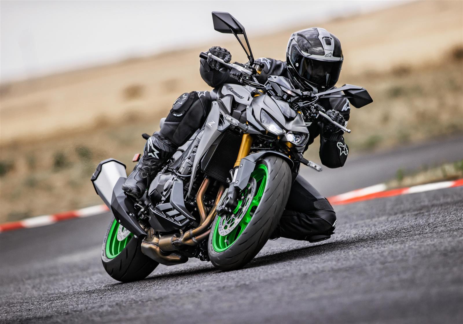 Dank einer neuen sechsachsigen IMU arbeitet das ABS neigungsabhängig, und die Kawasaki Cornering Management Function (KCMF) ist nun ebenfalls verfügbar. Dieses bahnbrechende System überwacht Parameter beim Einfahren in eine Kurve, am Scheitelpunkt und beim Ausfahren aus einer Kurve und moduliert damit die Bremskraft und Leistungsabgabe, um Fahrern zu helfen, ihre gewünschte Linie optimal zu halten.